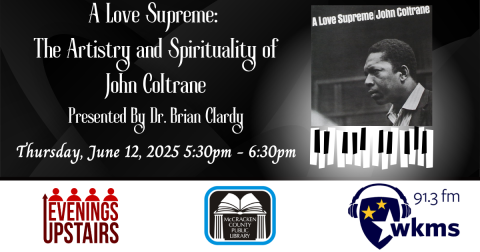 Sponsored in part by WKMS, this talk focuses upon the classic 1964 recording by famed saxophonist John Coltrane, the creative influences that underscored the work and its influence on artists over the last sixty years. A four-part musical devotional, “A Love Supreme” has captured the imagination of music lovers from every background. This presentation is a discussion of that history.