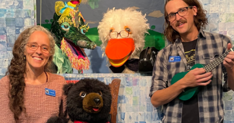 The Story Time season runs from Labor Day to Derby Day Each Tuesday at 10 am at the library. Brary Bear and Dr. Duck encourage kids, and their adults, to listen, learn, and sing. This program promotes early literacy skills.