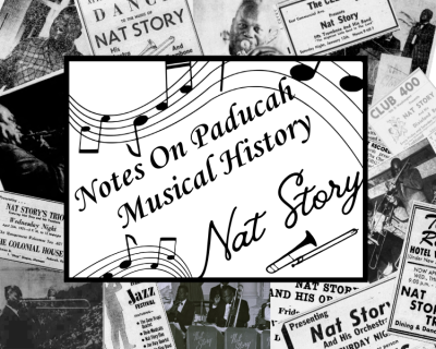 Nathaniel (Nat) Edward Story was born on August 8, 1904, to Ephron and Ida Story. According to city directories Nat spent most of his childhood living near Paducah’s historic Bronzeville area where he received most of his early musical education. He was influenced by local musician Nathan Bennett, who is credited for introducing numerous Paducaheans to music, including Story who started on drums and saxophone when he was around 12 years old. Nat went on to attend Lincoln High School where he played in the school band and took to playing trombone.1