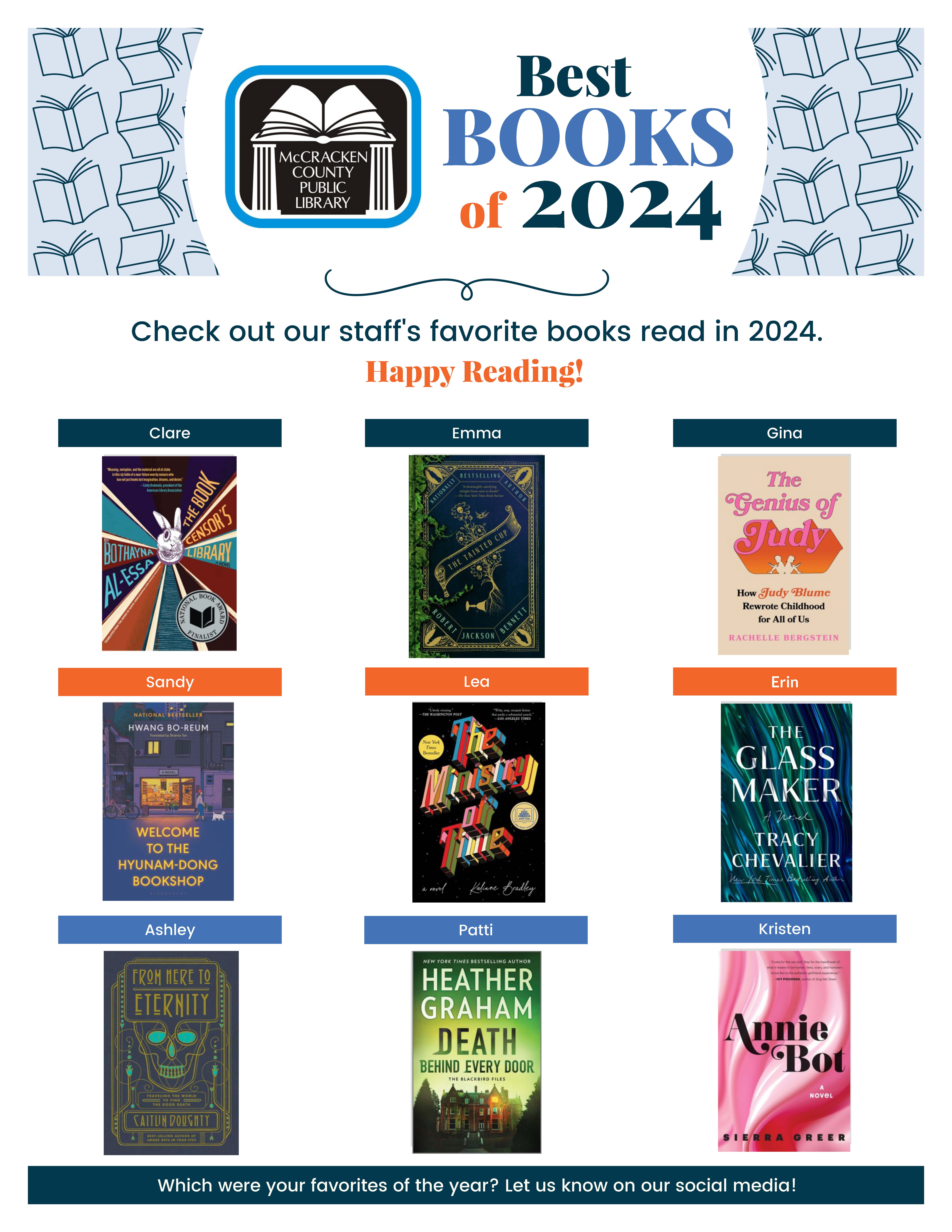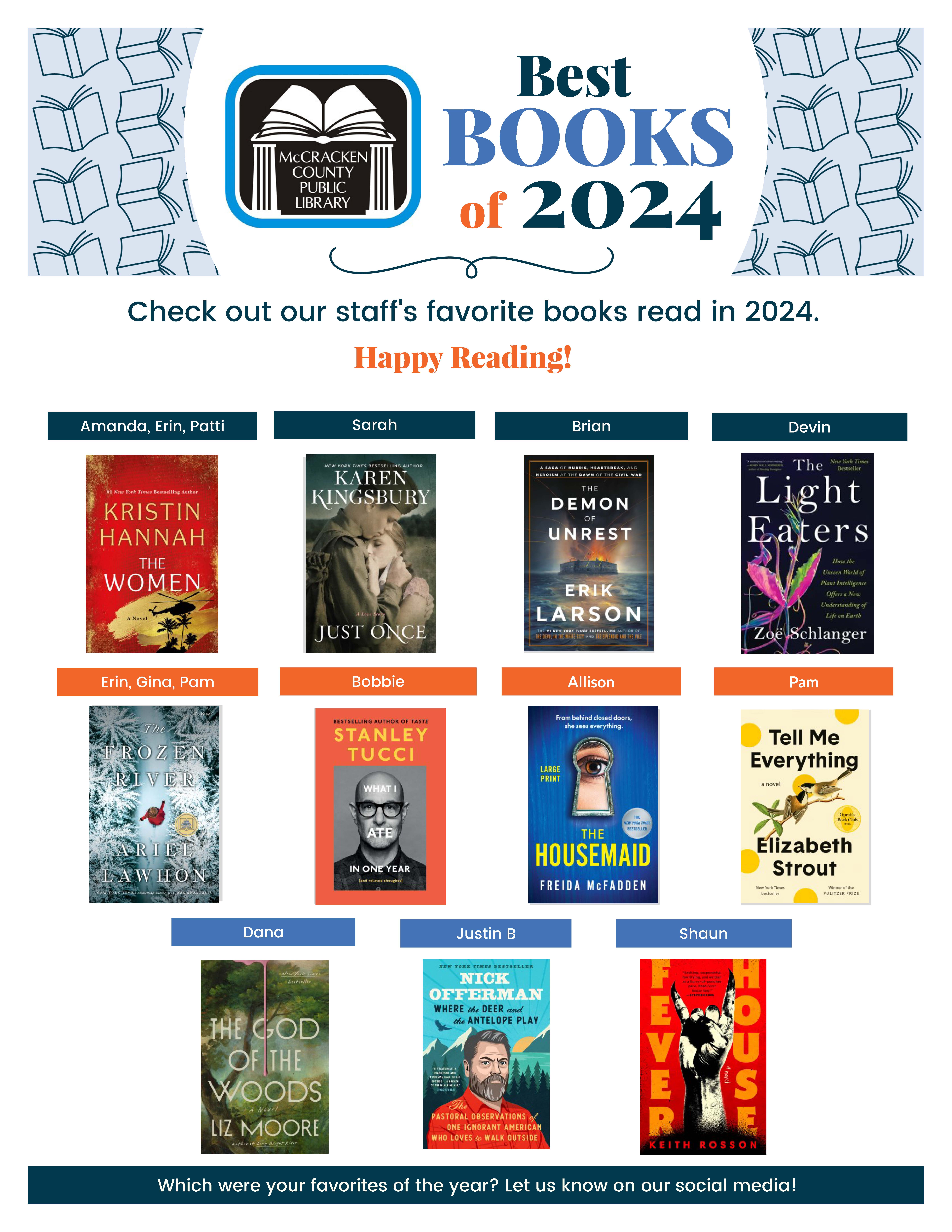 Library staff (mostly) love to read! Here are the best books of 2024 (in our opinions). Some of us couldn't choose just one!