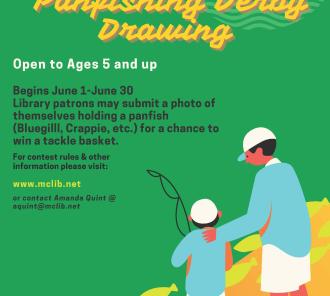 Beginning June 1st you can enter a recent photo of you and your best panfish caught, for a chance to win a basket full of cool fishing tackle and prizes at the McCracken County Public Library. Participants ages 5 and up are eligible to win.